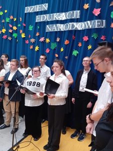 W jesiennej scenerii, ubarwionej pięknym występem zespołu muzycznego, zabrzmiały słowa wdzięczności i refleksji. To dzień, który łączy – nauczycieli, wychowawców, pracowników szkoły i uczniów, bo szkoła to nie mury, ale ludzie, którzy ją tworzą.