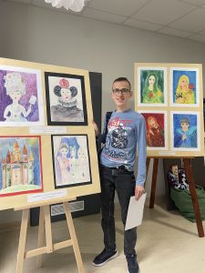 13 października 2025 r. w naszej placówce odbyła się wyjątkowa prezentacja twórczości uczniów należących do Koła Plastycznego. Wystawa zatytułowana „Czas, przestrzeń, wyobraźnia” ukazuje różnorodność stylów, tematów i technik artystycznych, które rozwijają się pod opieką pani Leny Grzelaczyk.